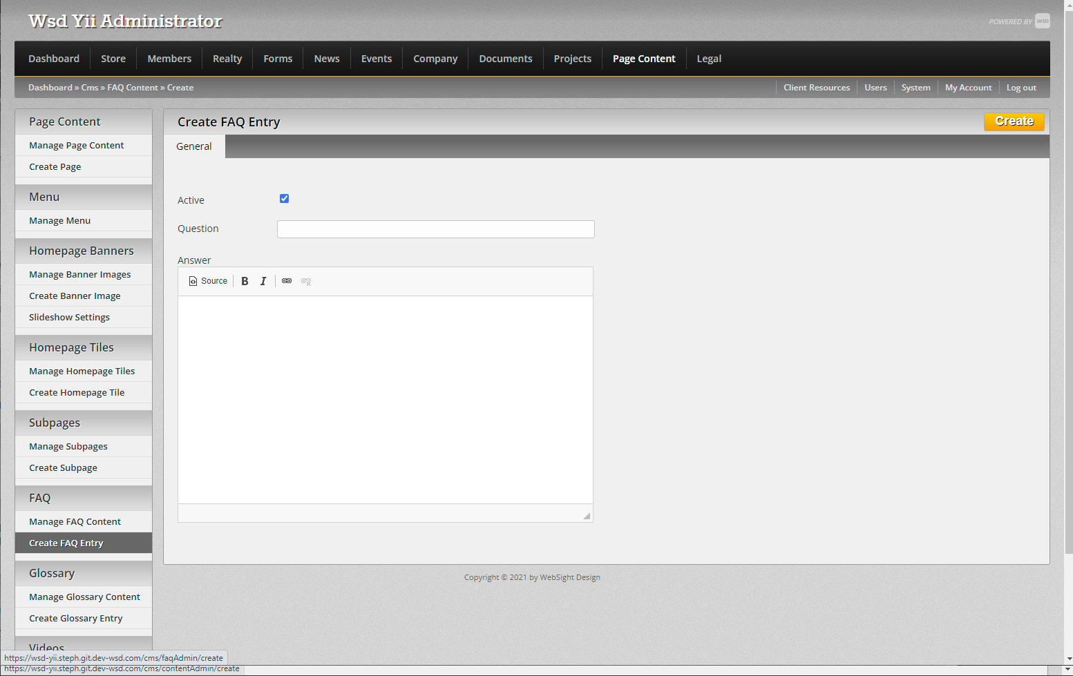 To create a new FAQ, click on “Create FAQ Entry” in the left column.